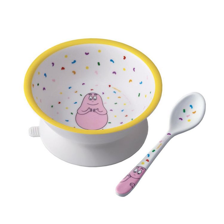 Bol Ventouse Barbapapa avec Cuillère Sécurisée pour Bébé - Idéal pour l'Apprentissage de l'Alimentation Autonome