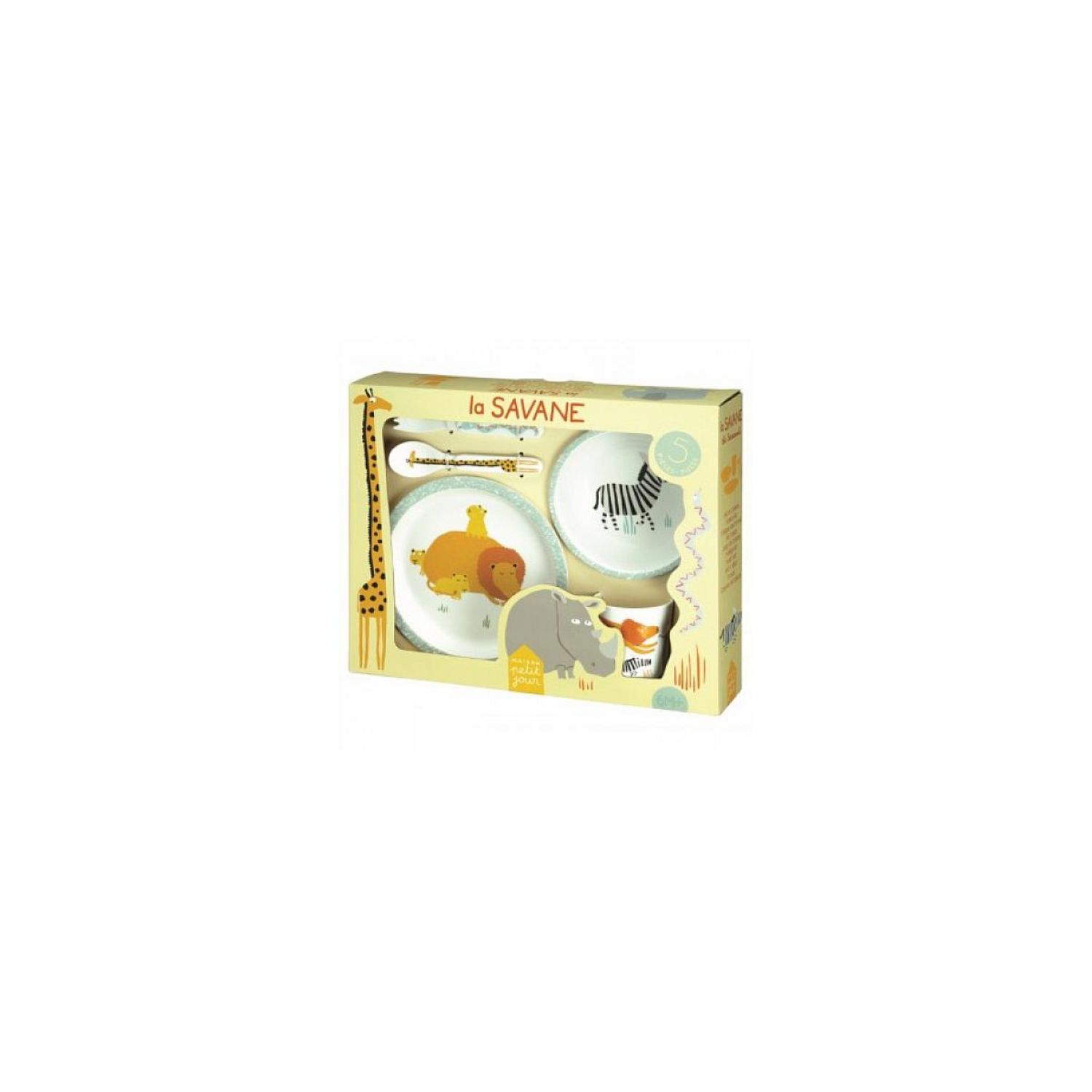 Coffret de vaisselle ergonomique 5 pièces La Savane pour enfants