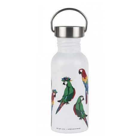 Gourde en inox de marque Petit Jour thème des perroquets. Contenance : 0.5L