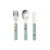 Set de 3 couverts pour commencer à manger tout seul, il est composé d'une fourchette, d'un couteau et d'une cuillère en inox. Idéal pour les petites mains. 12 mois et plus En Inox et ABS. 11 x 19 x 2 cm Conseils d'entretien: L'inox est lavable en machine. Ne pas mettre au four à micro-ondes. Laver avant la première utilisation.