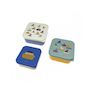 Un set de 3 lunch boxes à emmener partout. Pour les enfants ou adultes affamés, elles seront parfaites pour emporter un goûter, un repas léger ou snacks et encas des enfants. Ces lunch boxes sont gigognes et peuvent s'emboîter les unes dans les autres pour un gain de place pour leur rangement.