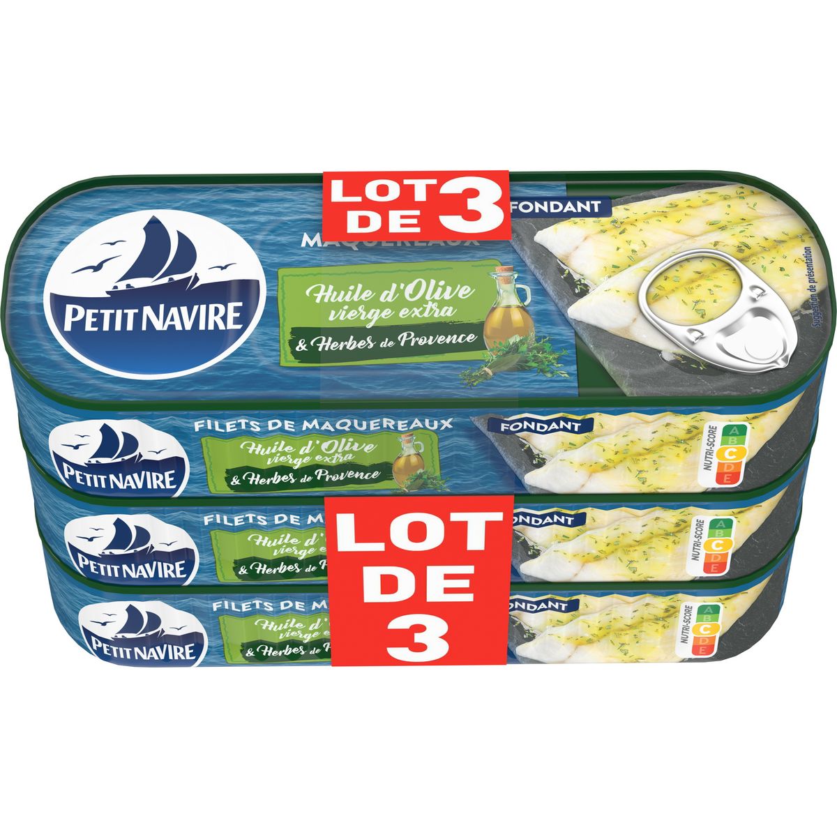 FILETS MAQUEREAUX HUILE D'OLIVE & HERBE DE PROVENCE PETIT NAVIRE 145G X 3 SANS ARÔME AJOUTE
