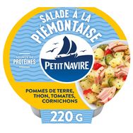 Petit Navire s'est inspiré de différentes traditions culinaires pour vous offrir une salade de qualité aux ingrédients typiques des cuisines d'ailleurs. Plongez au cœur de la région Piémontaise et dégustez de délicieux morceaux de thon agrémentés de légumes légèrement relevés à la moutarde.