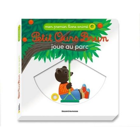 Petit Ours Brun joue, rit et découvre les plaisirs du parc : toboggan, balançoire, château de sable... Un livre animé pour explorer le parc de manière interactive et ludique. Des animations magiques pour stimuler la motricité fine Grâce à des mécanismes solides, les images prennent vie sous les doigts de l'enfant. Il fait glisser, tourne ou tire pour voir Petit Ours Brun bouger... comme par magie ! Ce livre animé favorise la motricité fine et l'éveil visuel. Un livre robuste conçu pour les tout-petits La collection Mon premier livre animé Petit Ours Brun est conçue pour les petites mains avec une fabrication pensée pour que les tout-petits puissent utiliser le livre en autonomie. Le livre est : - Solide grâce à ses pages cartonnées épaisses, - Indéchirable car les animations sont imbriquées dans les pages.