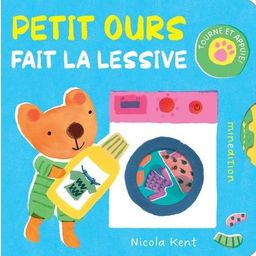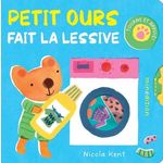 Tu veux bien aider Petit Ours à faire sa lessive ? Des volets à ouvrir, des roue à faire tourner et des tirette permettent aux tout-petits d'imiter maman ou papa dans leurs taches ménagères.
