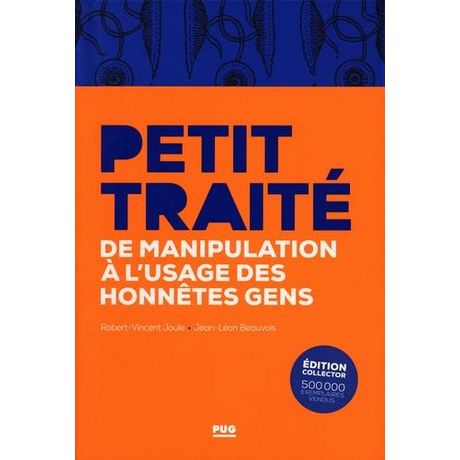 Un livre objet exceptionnel pour un ouvrage qui ne l'est pas moins ! Depuis sa première édition parue en 1987, le Petit traité de manipulation à l'usage des honnêtes gens est devenu plus qu'un ouvrage de référence : c'est un véritable best-seller en psychologie sociale, en management et en sciences humaines, connu non seulement des enseignants, des étudiants et des professionnels, mais aussi du grand public. Pour célébrer le 500 000e exemplaire vendu (un phénomène pour un essai de psychologie sociale), les PUG proposent une édition collector sous la forme d'un livre-objet de grande qualité : reliure cartonnée, jaquette sérigraphiée, pages de garde teintées dans la masse de couleur assortie, tranche des pages jaspées (colorées) sur trois côtés, tranchefile.