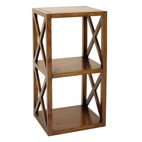 Étagère marron 2 cases 40 cm croisillons bois Mindi. Dimensions : 40 x 35 x 80 cm. Article en Mindi et Contreplaqué. Une touche ethnique, une ligne contemporaine pour rendre l'atmosphère chaleureuse. Meuble monté