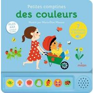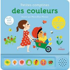Chanter, répéter, s'amuser... Il n'y a rien de mieux qu'un livre sonore pour apprendre à bébé à reconnaître les comptines tout en babillant. Sept comptines autour des couleurs Une souris verte , J'ai ramassé des champignons , Pomme de reinette , Une petite poule grise , Mon poisson rouge , Trotte, trotte, renne rose , Coccinelle, demoiselle, voici sept comptines joyeuses pour faire découvrir les couleurs aux tout-petits. Un livre adapté aux plus jeunes lecteurs Grâce à son boîtier sonore et à ses sept boutons faciles à déclencher, les plus petits peuvent écouter des comptines en toute autonomie. La lecture de l image et l écoute des chansons sont simultanées, puisque le boîtier est fixé à l ouvrage, sous les illustrations. Tout en écoutant, l enfant découvre les illustrations de Marie-Elise Masson, douces et colorées, parfaitement adaptées à cette tranche d âge. Avec des piles AAA longue durée.