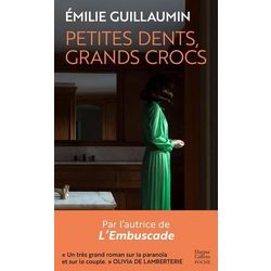 Un roman vertigineux sur le couple et la maternité Sarah Barry, épouse et mère en apparence comblée, a quitté le service RH d'une grande entreprise pour s'accorder une année d'écriture. Mais alors qu'elle dispose enfin du temps nécessaire, le piège de la domesticité semble se refermer sur elle. Cela commence par une fatigue inhabituelle, des chutes de cheveux, et puis il y a ces maux de tête lancinants. Quand il n'est pas en voyage d'affaires, son mari la couve, la chahute, la questionne. Entraînant leur fils dans ce manège qui ne tourne plus très rond. A moins que ce ne soit elle qui fantasme ? Dans une langue et un rythme envoûtants, sorte de ritournelle noire où les vampires prennent les atours de la tendresse, Emilie Guillaumin offre avec ce troisième livre un regard sans concession sur le couple et la maternité. A propos de l'autrice Après des études de lettres à la Sorbonne et de criminologie à New York, Emilie Guillaumin a passé deux ans au sein de l'armée de terre française, aventure dont elle a tiré Féminine, puis L'Embuscade. Petites dents, grands crocs est son troisième roman. Un suspense psychologique et dynamique, un rythme incisif, un roman qui happe et qui bouscule. Hubert Artus, Le Parisien Week-end Un très grand roman sur la paranoïa, un très grand roman sur le couple . Olivia de Lamberterie, Télématin Une langue rugueuse qui gratte là où ça fait mal . Catherine Jamain, La Librairie des thés L'écriture acérée nous plonge dans les affres du doute, de la tourmente et de la folie, nous réservant une fin des plus terrifiantes . Librairie nouvelle d'Orléans Une fable noire au suspens psychologique bien dosé jusqu'au coup de théâtre final. Vertigineux ! Cosmopolitain Une fin absolument incroyable . Gérard Collard
