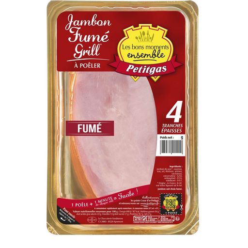 Ingrédients : Jambon de porc, couenne, eau, sel, dextrose, arômes naturels, saccharose, conservateur : sel nitrité,antioxydant : érythorbate de sodium, stabilisant : triphosphates.