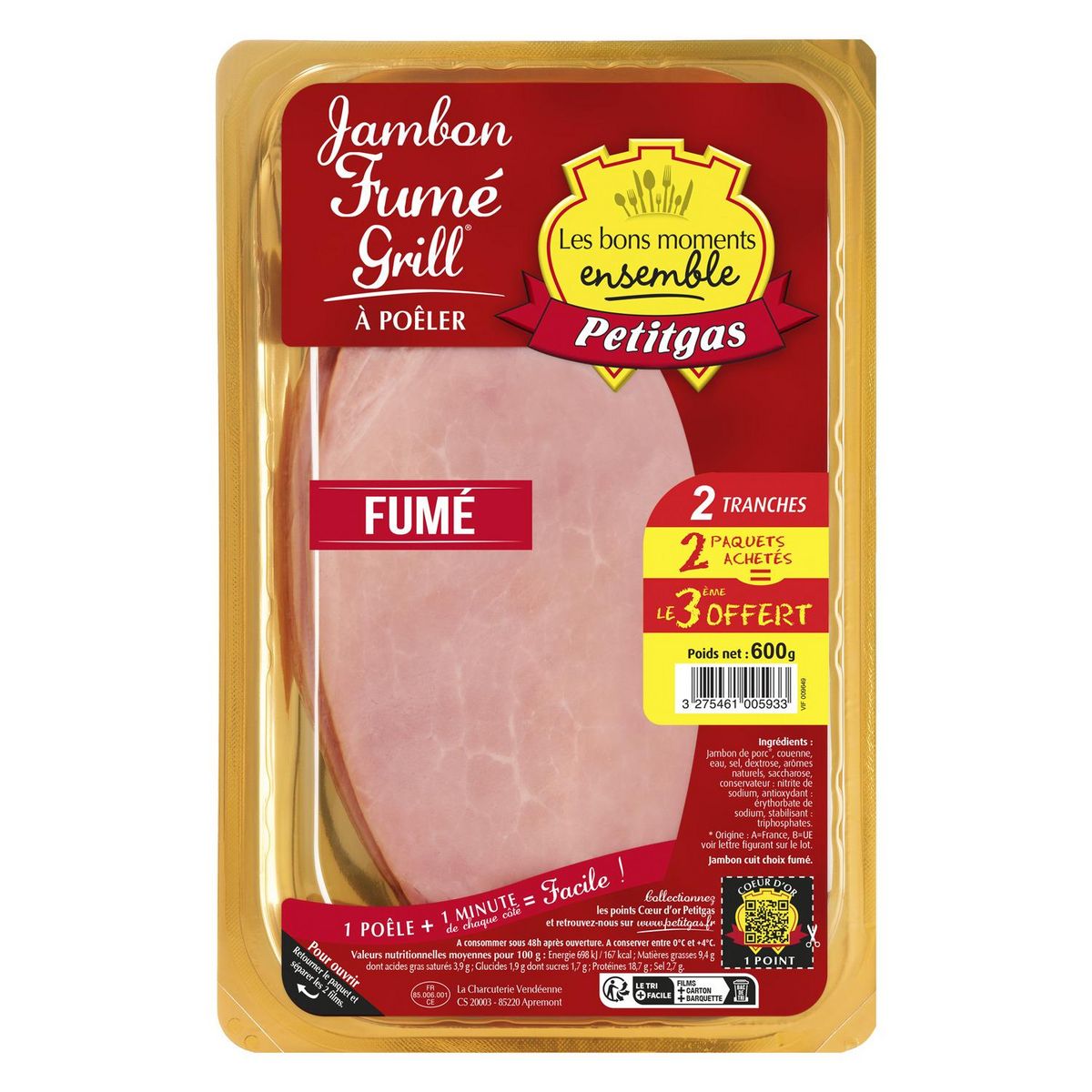 LOT DE 3 JAMBON CUIT CHOIX FUME 2 TRANCHES EPAISSES