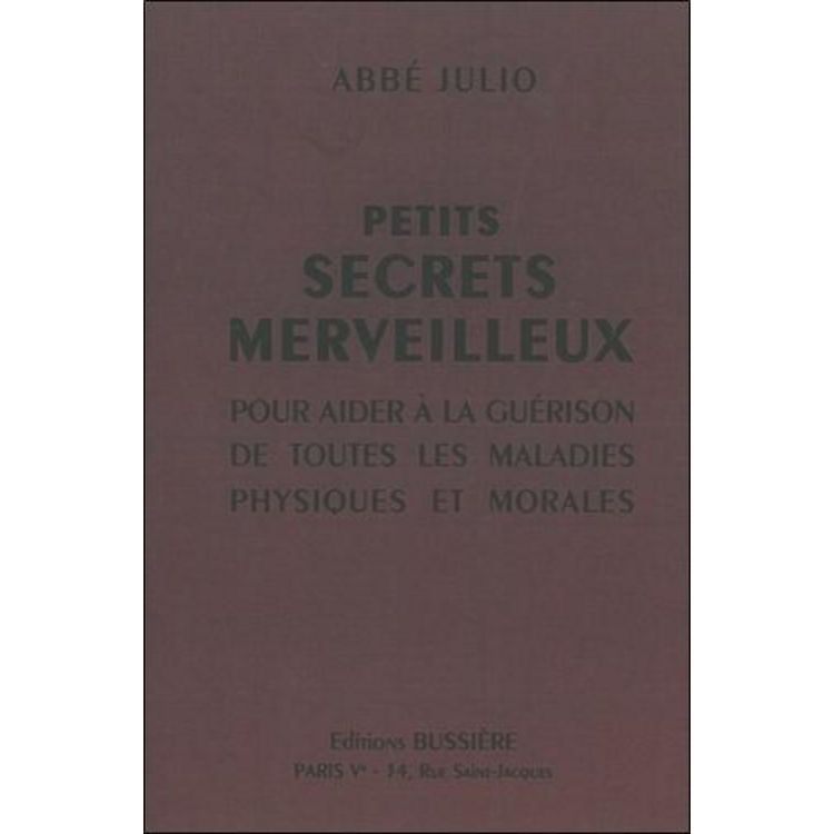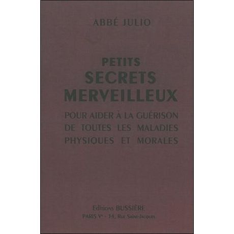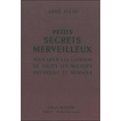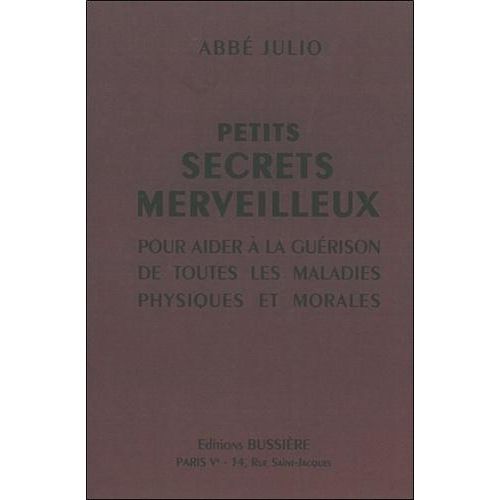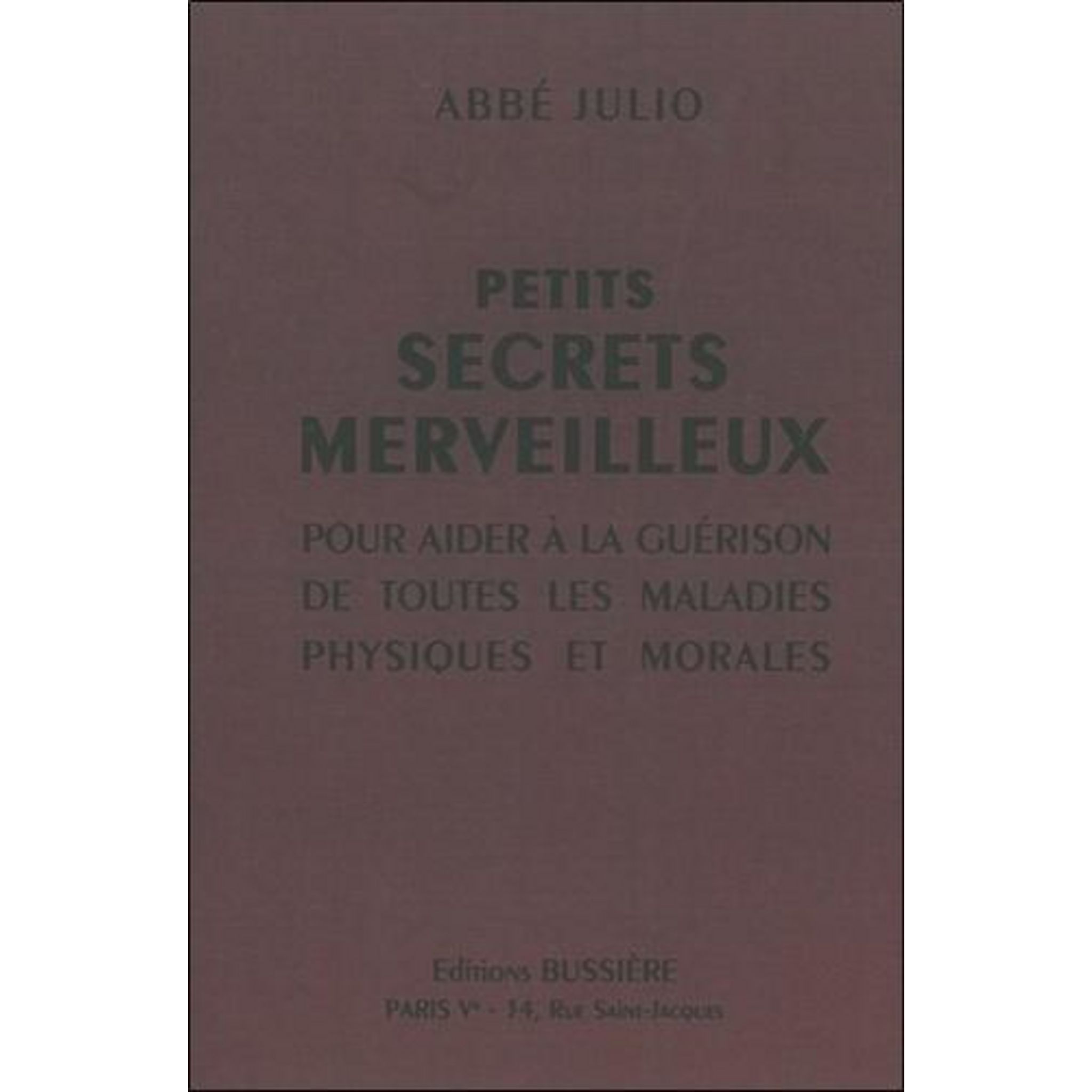 Petits secrets merveilleux pour aider à la guérison de toutes les maladies physiques et morales. Ce petit livre permettra aux croyants d'être aidés par des procédés théurgiques d'une grande puissance bénéfique attirée par ceux qui les utilisent. C'est un condensé des trois gros ouvrages de l'Abbé Julio.