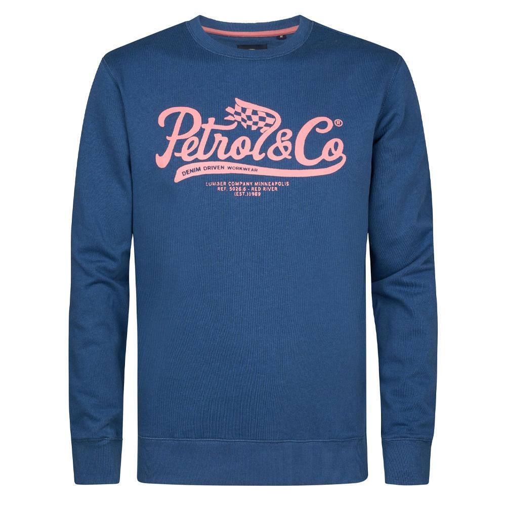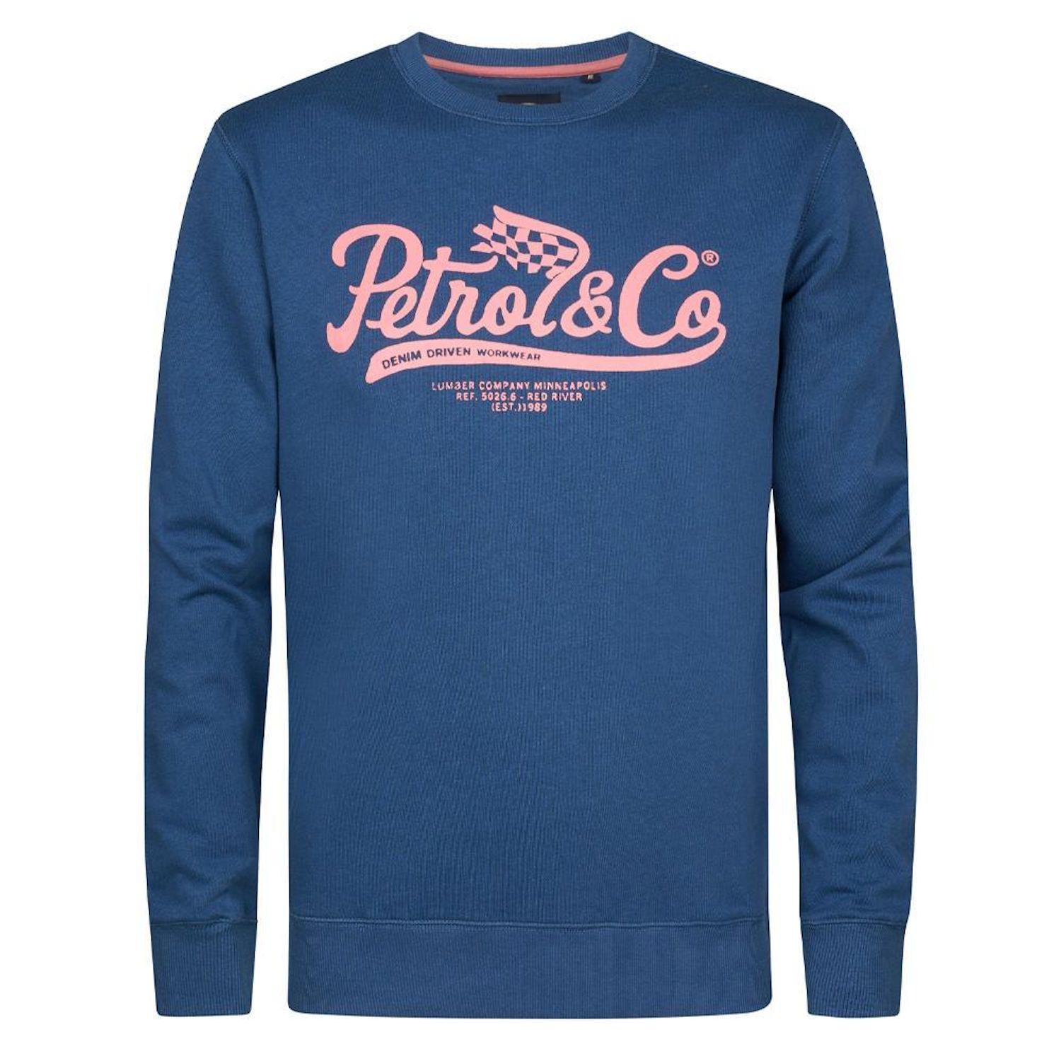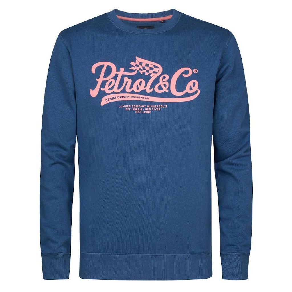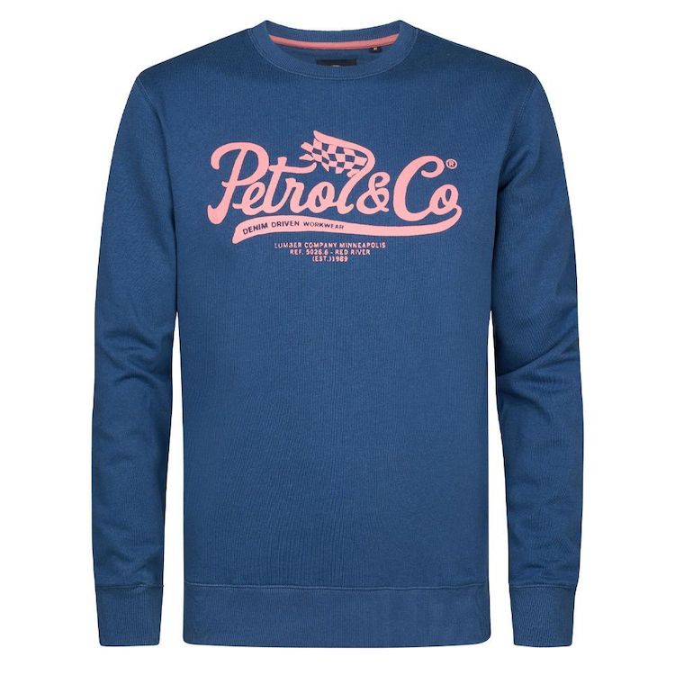 Optez pour ce sweat Petrol Industries- 100% Coton- Coloris : Bleu/Rose- Col rond- Manches longues
