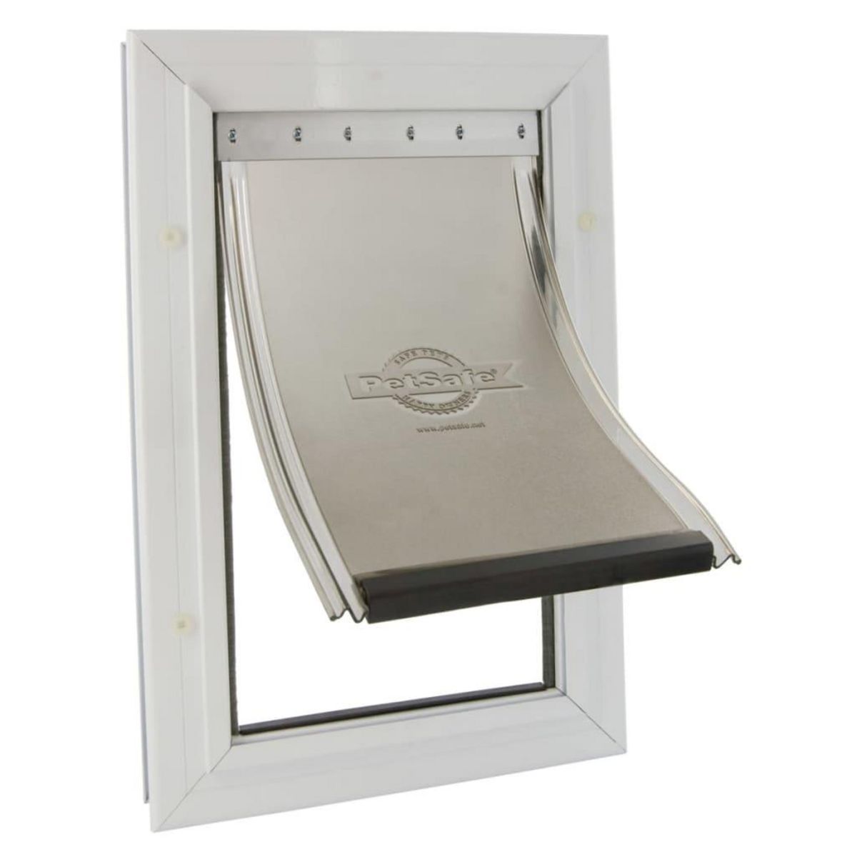 Le cadre en aluminium solide a des coins renforces pour une utilisation intensive. Le volet flexible et doux est inclinable et reglable. Une fermeture magnetique de volet et une etirage de la pile par des cotes de l'ouverture du volet forment un joint etanche aux intemperies. Un panneau de fermeture est inclus pour ameliorer la resistance aux intemperies ou pour controler l'acces de votre animal de compagnie a la porte. L'installation est tres simple.