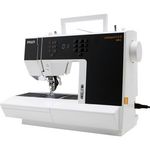 | Livré avec | Notice, Brosse / Découseur, Feutre pour bobine, Guide couture / matelassage, Canette, Découd vite, Petit tournevis, Porte bobine vertical, Table d'extension, Pédale, Aiguille | |