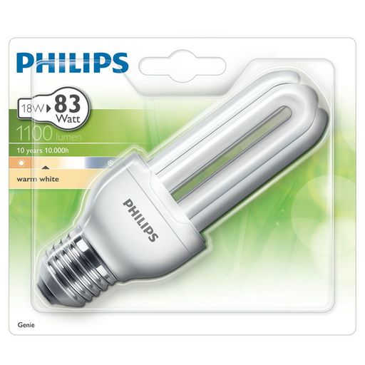 •Classe énergétique: A •Puissance consommée: 18 W •Puissance équivalente: 83 W •Durée de vie de la lampe: 10 000 heure(s) •Couleur: Blanc chaud •Température de couleur: 2 700 K •Indice de rendu des couleurs (IRC): 81 •Temps d'allumage: 0,3 s •Temps de chauffe à 60 %: 5-40 secondes