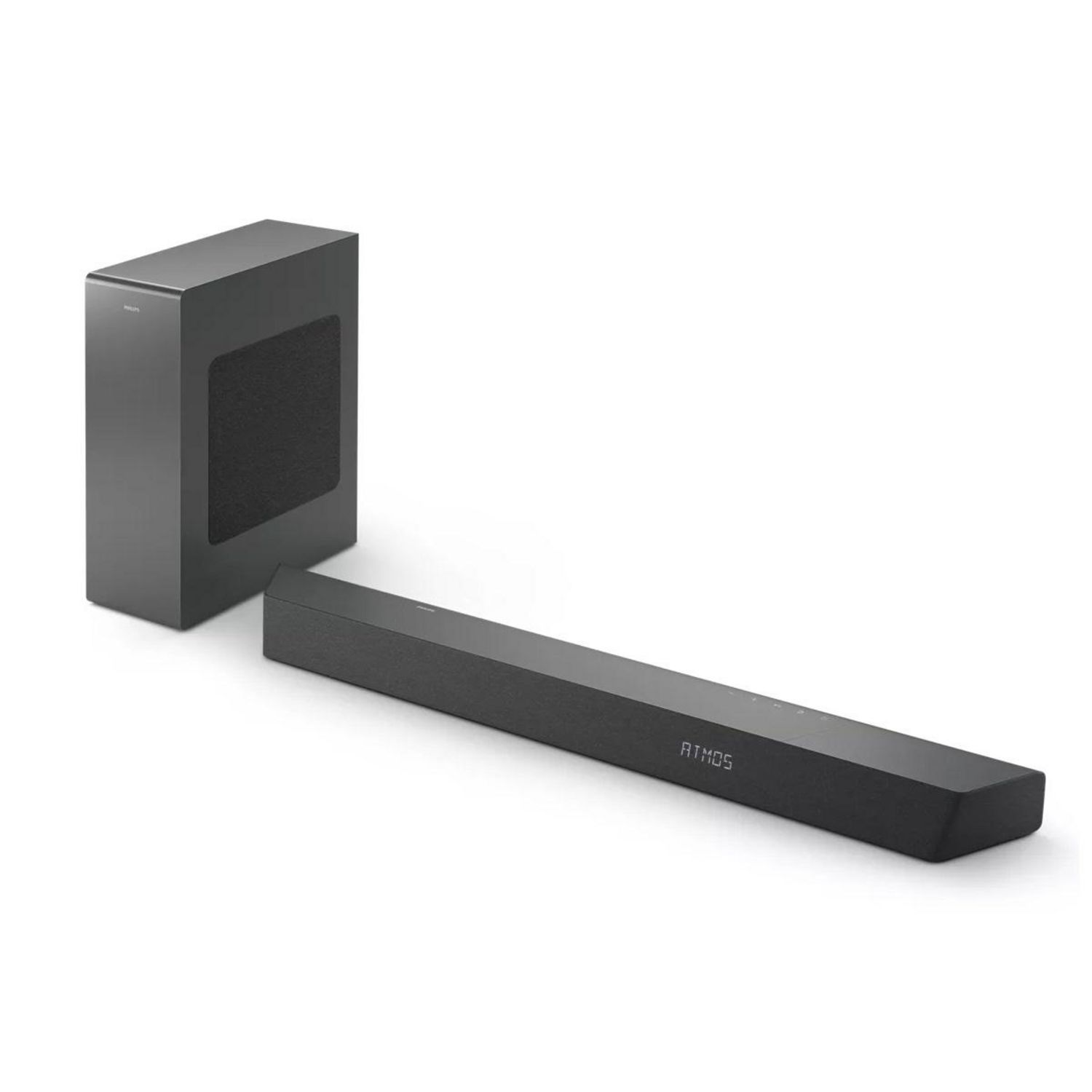 Philips TAB8507B La barre de son The One avec caisson de basses à connexion sans fil TAB8507B de Philips vous offre une véritable expérience comme au cinéma. Ses haut-parleurs dédiés au canal central produisent une excellente clarté vocale, tandis que la technologie Dolby Atmos crée un son Surround incroyablement immersif.