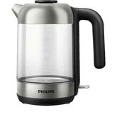 Découvrez la bouilloire Philips HD9339/80, un appareil moderne et efficace pour préparer vos boissons chaudes. Dotée d'une capacité de 1,7 l et d'une puissance de 2200 W, cette bouilloire en verre durable présente un design élégant. Elle est équipée d'un indicateur de niveau d'eau, d'un éclairage bleu intuitif, d'un système d'arrêt automatique pour une utilisation sécurisée, ainsi que d'une base rotative à 360° pour un confort optimal. Sans fil avec rangement du câble, filtre en nylon, protection anti-ébullition à sec et base antidérapante complètent ses fonctionnalités.