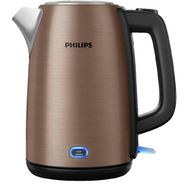 La bouilloire électrique Philips Viva Collection HD9355/92 allie design élégant et performance. Avec une capacité de 1.7 l et une puissance de 2060 W, elle permet une ébullition rapide. Son revêtement en acier inoxydable noir et cuivré assure durabilité et style. Elle est équipée d'un indicateur de