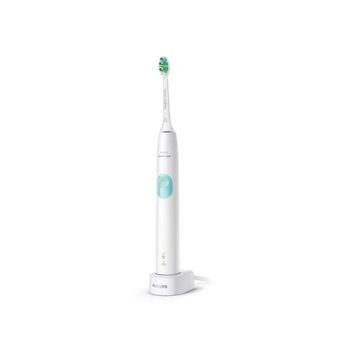 Cette brosse à dents élimine jusqu'à 7 fois plus de plaque dentaire qu'une brosse à dent altique - La tête de brosse inclinée permet un meilleur accès aux dents du fond et aux endroits difficiles à atteindre - Technologie sonique adaptée à une utilisation avec des appareils orthodontiques, plombages, couronnes et facettes , elle contribue à la prévention des caries et améliore la santé des gencives - La technologie sonique avancée de Philips Sonicare projette de l'eau par impulsions entre les dents, tandis que les mouvements de la brosse fragmentent puis balaient la plaque - 1 mode de brossage Clean pour un nettoyage quotidien exceptionnel - La fonction EasyStart permet de régler le niveau de puissance de la brosse à dents au cours des 14 premières utilisations pour vous aider dans la transition entre les deux types de brosses à dents - Capteur de pression : il vous alertera par le biais d'impulsions sonores pour vous rappeler de réduire votre pression - Minuteur Quadpacer pour un brossage complet de votre bouche, un signal sonore toutes les 30 secondes vous indiquera qu'il est temps de passer à une autre zone de la bouche- Fonction Smartimer : vous aidera à respecter le temps de brossage recommandé par les dentistes, soit 2 minutes - Technologie BrushSync : technologie intégrant des puces permettant au manche intelligent de détecter la tête de brosse intelligente et de se synchroniser avec elle , ils fonctionnent ensemble pour permettre des rappels de remplacement.