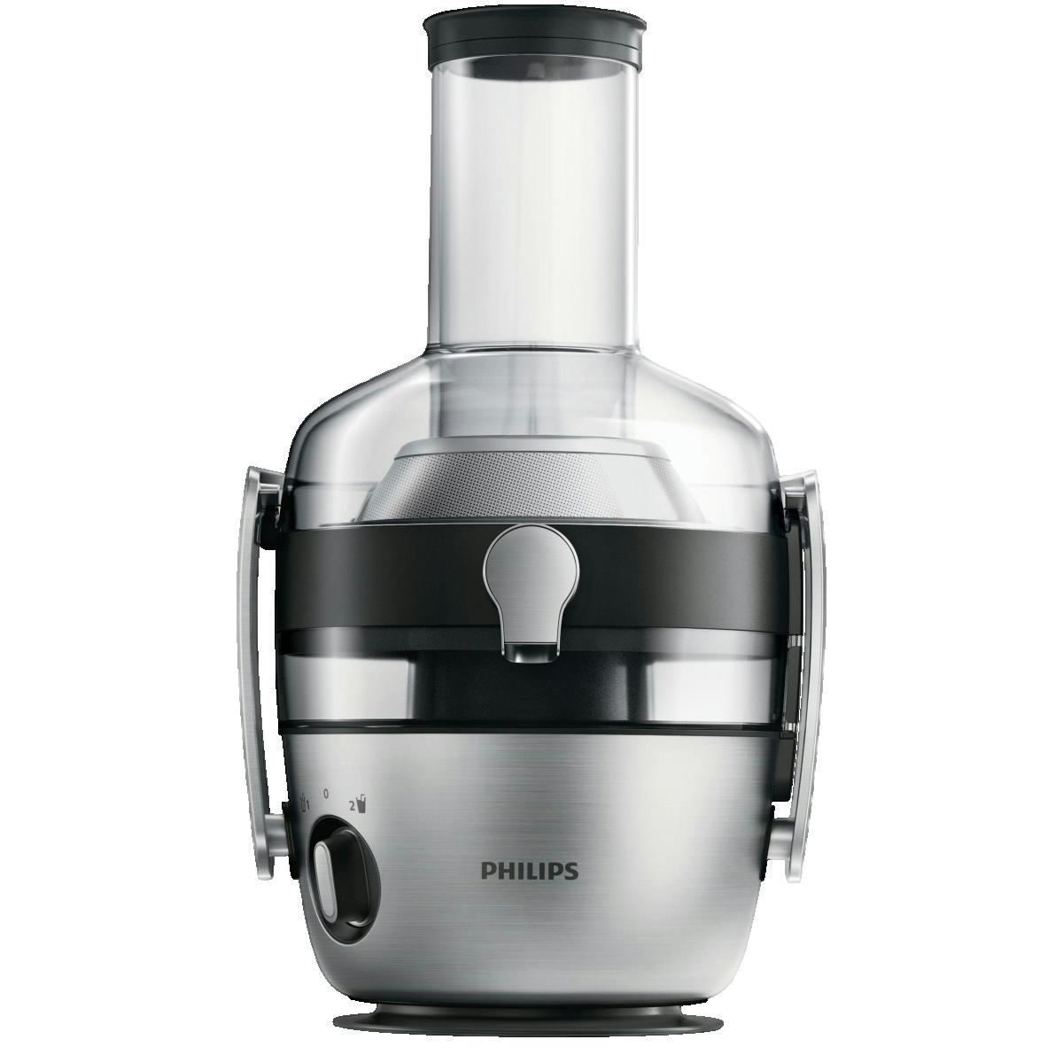 Pour encourager et augmenter la consommation de fruits, cette centrifugeuse Philipps HR 1922 est parfaite. Oranges, ananas, Kiwi, pommes, l'appareil accepte les fruits épluchés (mais pas nécessairement) et en gros quartiers. En effet, la cheminée est bien large et le moteur puissant. Pour autant, s'il est plutôt encombrant sur le plan de travail de la cuisine, il reste très silencieux. Les fruits passent dans une une lame métallique qui les réduit en purée alors que la pulpe et le jus sont projetés sur les parois de la cuve pour être récupérés dans une rigole équipée d'un bec verseur. Il est possible de choisir entre deux épaisseurs en pulpe selon les envies et les types de fruits : le premier programme donne un jus clair alors que le programme II sera plus chargé en pulpe et en fibres. Le livre de recettes donne des idées et une application iOS élargit les possibilités de mélange selon les effets recherchés. Si l'appareil fonctionne très bien, son nettoyage pourtant annoncé en une minute par le fabricant reste plutôt fastidieux. Les pièces de plastique sont volumineuses et le tamis en métal se nettoie mal avec des fibres qui restent prisonnières.