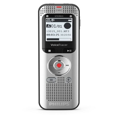 Le Philips Voice Tracer DVT2050 est un dictaphone numérique conçu pour l'enregistrement mobile. Il offre une qualité sonore exceptionnelle grâce à l'enregistrement stéréo MP3, une mémoire interne de 8 Go et une autonomie pouvant atteindre 50 heures. Equipé d'un microphone intégré, d'un écran LCD rétroéclairé de 1.3 pouces, d'une fonction radio FM et d'un port USB 2.0, ce modèle pratique et léger (0.14 kg) est idéal pour capturer notes, idées et pensées en déplacement. Il dispose également d'un emplacement pour carte micro SD pour étendre la capacité de stockage. Sa batterie lithium polymère assure une longue durée d'utilisation.