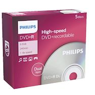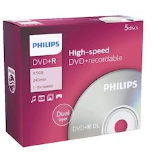 Ce pack contient 5 disques DVD+R double couche de la marque Philips, avec une capacité de stockage de 8,5 Go chacun. Ces disques permettent jusqu'à 4 heures de contenu vidéo de haute qualité. La vitesse d'écriture est de 8x, permettant de graver les disques en seulement 8 minutes. Compatibles avec l