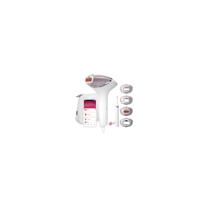Inclut 4 embouts intelligents : un format plat avec filtre UV pour le visage (lèvre, menton), un concave pour les zones sensibles (maillot/aisselles), et un convexe pour les grandes surfaces (jambes/bras). Chaque accessoire active automatiquement le programme optimal.