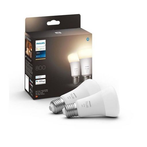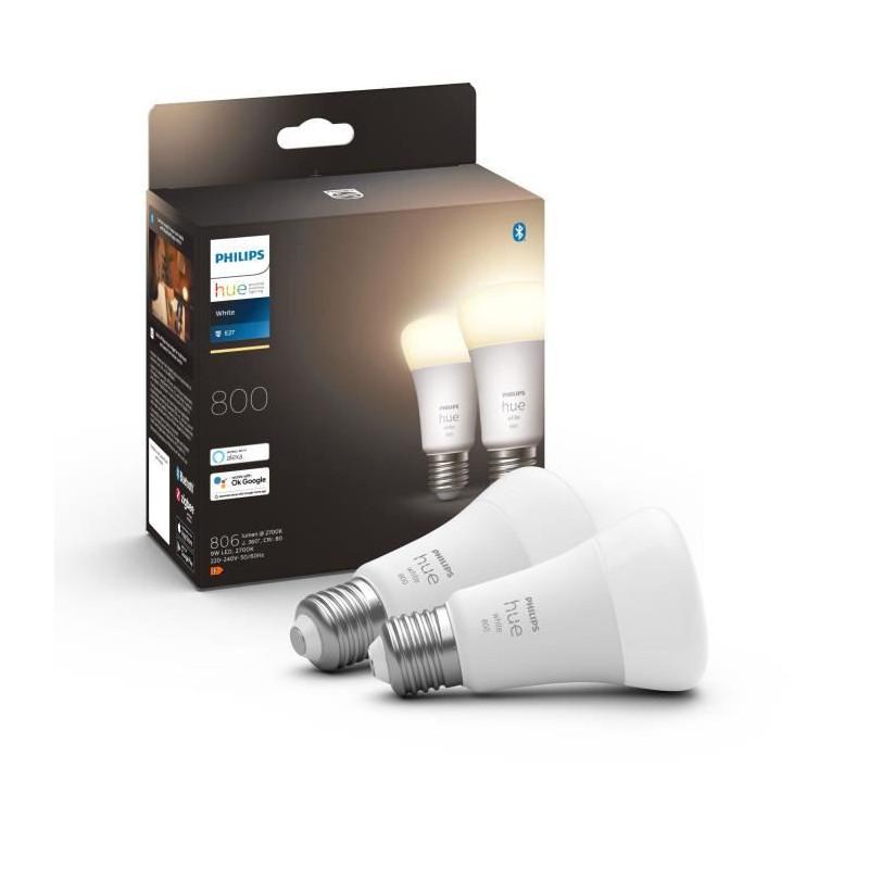 PHILIPS Hue White Ampoules LED connectees E27 - Compatible Bluetooth pack de 2
