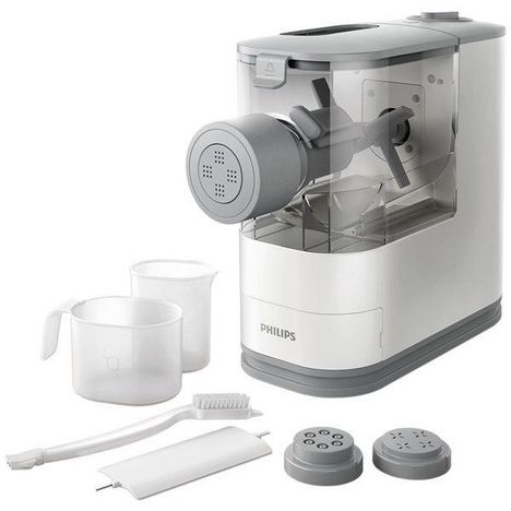 Philips HR2345/19 La machine à pâtes et nouilles Viva HR2345/19 de Philips est une solution entièrement automatique qui vous permet de préparer des pâtes et nouilles fraîches maison, rapidement et facilement. Compacte, elle prend peu de place dans la cuisine et dans le placard.Pétrit automatiquement