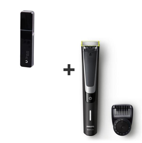 Rasoir masculin QP6510/20 OneBlade Pro + Tondeuse Nez et oreilles U Shave 700229