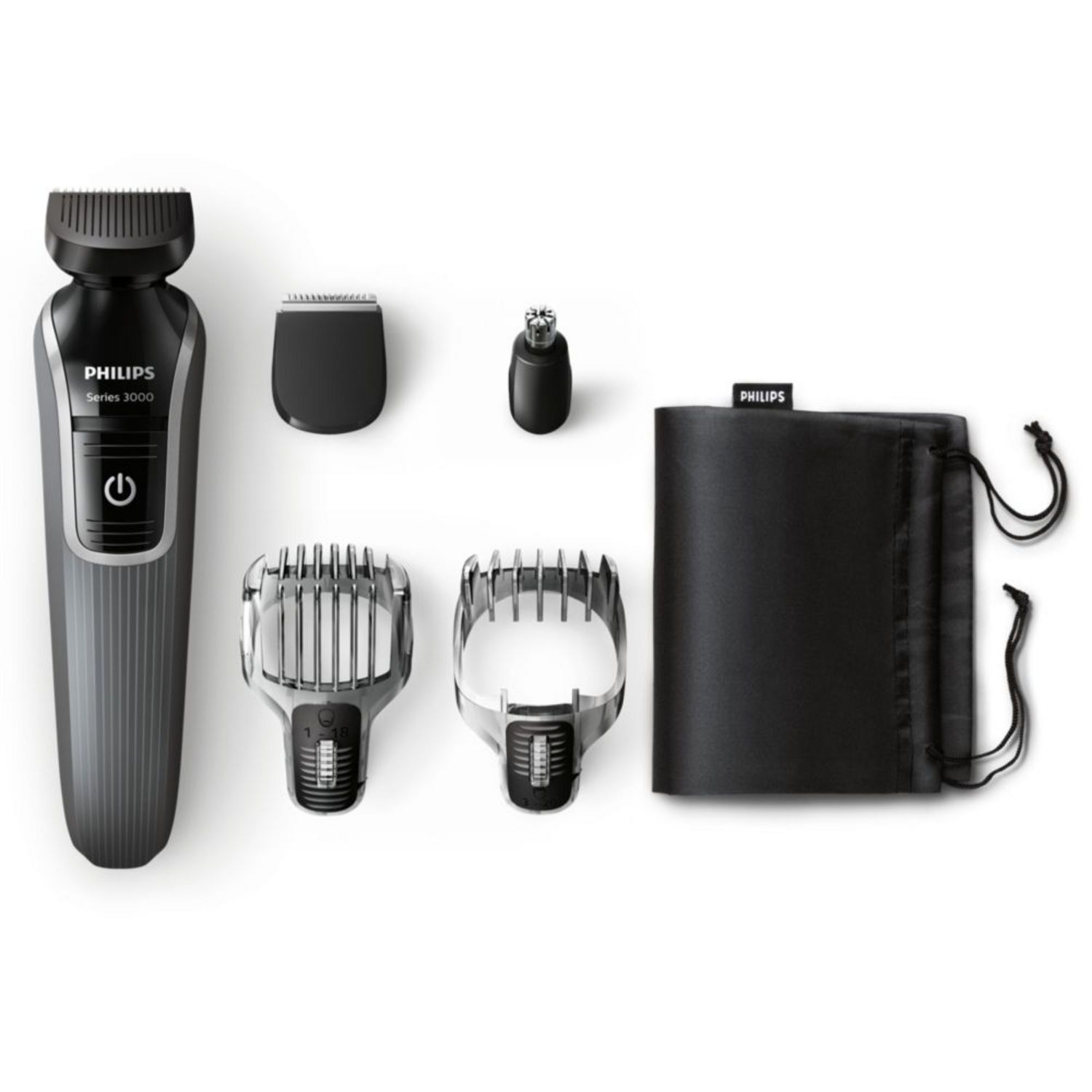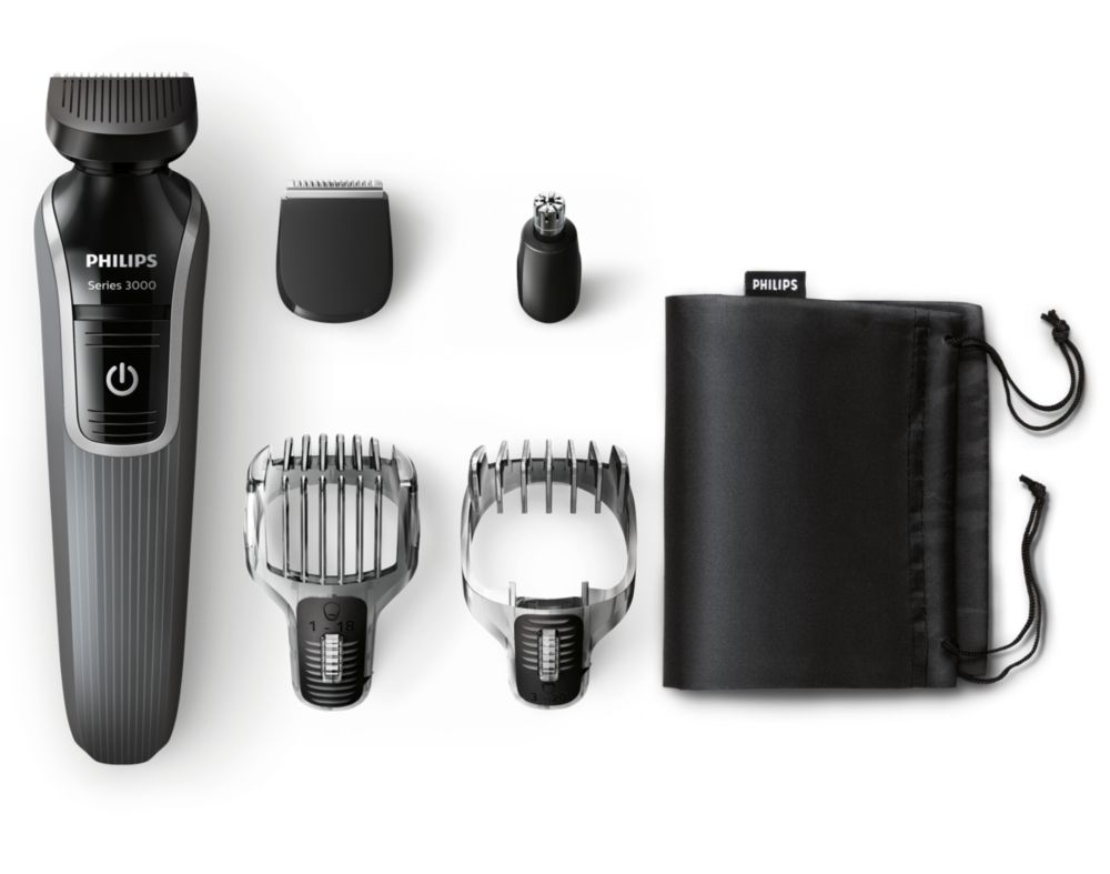La tondeuse multi-usages Philips QG3334/15 Multigroom Series 3000 vous permet de réaliser facilement tous les styles avec ses différentes têtes pour visage et cheveux.