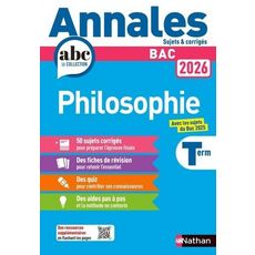 Les Annales ABC du BAC pour réviser et préparer l'épreuve de Philosophie Terminale du Bac 2026. - 50 sujets corrigés pour préparer l'épreuve. - Des fiches de révisions pour retenir l'essentiel. - Des exercices pour contrôler ses connaissances. - Des aides pas à pas et la méthode en contexte + Rédigé par des enseignants ! + Annales ABC du BAC 2026 Philosophie Terminale - Enseignement commun Conforme aux programmes du Bac Une nouvelle formule pour préparer avec succès l'épreuve finale du Bac ! Les sujets complets du Bac 2025 corrigés Les bonnes méthodes à acquérir pour réussir. Des rappels de cours, des QCM et des exercices pour faire le point. Des sujets pas à pas avec des corrigés expliqués pour s'entraîner à l'épreuve.