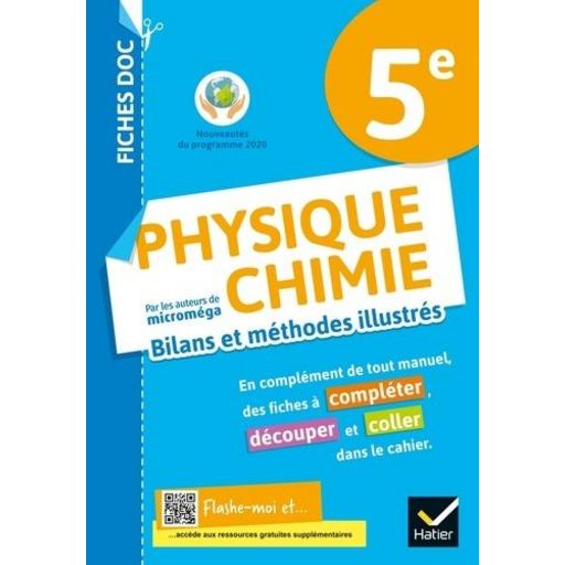 Fiches détachables de Physique Chimie pour la 5e Des fiches détachables en recto seul à compléter et à coller dans le cahier, pour limiter les photocopies ! - Des fiches illustrées (schémas, photos d'expérience...) en couleurs pour une trace écrite soignée et une prise de notes facilitée - Des cartes mentales et des flashcards pour mémoriser - Des ressources numériques complémentaires : flashcards, vidéos d'expérience...