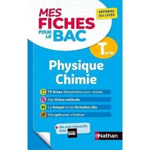 Des fiches conformes au programme du nouveau Bac de Physique-Chimie pour réviser vite et bien ! Des fiches simples et claires pour un maximum d'efficacité : Des fiches détachables au format poche sur toutes les notions du programme Des analyses d'oeuvres incontournables Des bulles d'aide : astuces du prof, lexique, remarques et citations... Et en plus : Un système pratique pour suivre ses révisions : lue , relue , apprise Toutes les infos-clés disponibles sur les rabats Des quiz via l'application Nathan Live !