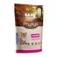 Distribuez sec en respectant les rations journalières recommandées, et adaptez les quantités selon l’activité et les conditions environnementales de votre animal. En cas de changement d’aliment, veillez à respecter une transition alimentaire. Tenir de l’eau fraîche et propre à disposition de l’animal. Une fois ouvert, refermer correctement et conserver dans un endroit frais et sec.