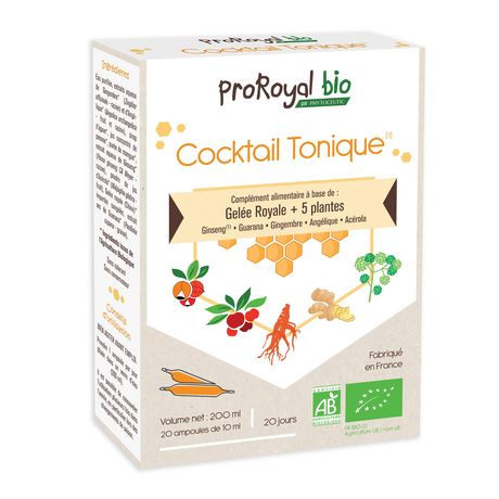 Ampoules cocktail tonique gelée royale + 5 plantes bio