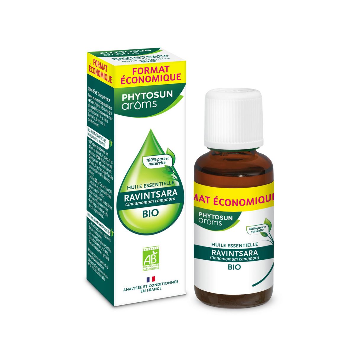 Huile essentielle de Ravintsara bio* (Cinnamomum camphora). *Ingrédient issu de l’Agriculture Biologique Organe producteur : feuilles. Spécificités biochimiques : 1.8-cinéole, sabinène, α-terpinéol