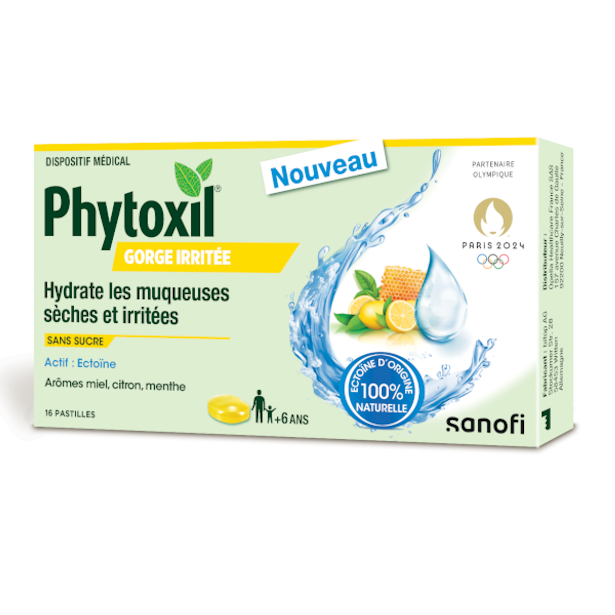 Grâce à l'Ectoïne, molécule d'origine 100% naturelle aux propriétés de protection cellulaire, Phytoxil Pastille Gorge Irritée forme un bouclier protecteur appelé "Ectoïne Hydro Complex" et :