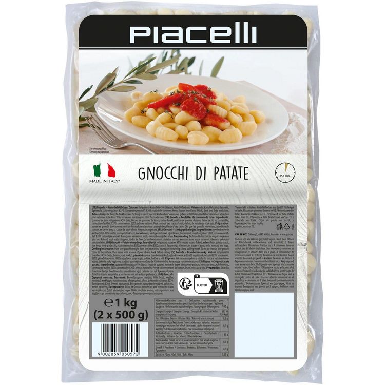 Les gnocchis à la pomme de terre de Piacelli sont simple et rapide à préparer. Ils se dégustent parfaitement avec une sauce ou le pesto de votre choix. L´emballage pratique en 2 portions de 2x500g garanti un maximum de fraicheur y compris en petite portion.
