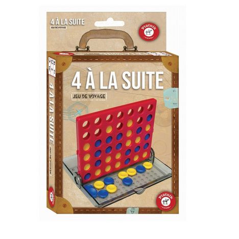 L'édition voyage du jeu de stratégie et de réflexion pour enfant le plus connu, a emporter partout ! Le jeu se joue à 2, chacun sa couleur, a tour de rôle, chaque joueur insere un de ses pions dans la grille. Le premier a aligner 4 pions horizontalement, verticalement ou en diagonale remporte la partie !.Nombre de joueurs : 2 Age minimum requis : 7 ansDurée d'une partie : 10 min Age minimum : 7 ans