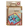 Jeu de voyage Petits chevaux magnétiques. Se joue jusqu'à 4 joueurs. Faire sortir chacun de ses chevaux de l'écurie, leur faire faire le tour du plateau et atteindre le haut de l'échelle sans que les adversaires les fasse retourner à la case départ !