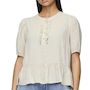 Craquez pour la blouse noir de la marque Pieces !Coloris : BeigeCol rondManches courtesFermeture boutonsVolant en basComposition : 70% Viscose, 30%Lin