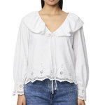 Optez pour cette blouse Pieces Coloris : BlancCol V Manches longuesComposition : 52% polyester recyclé, 48% coton