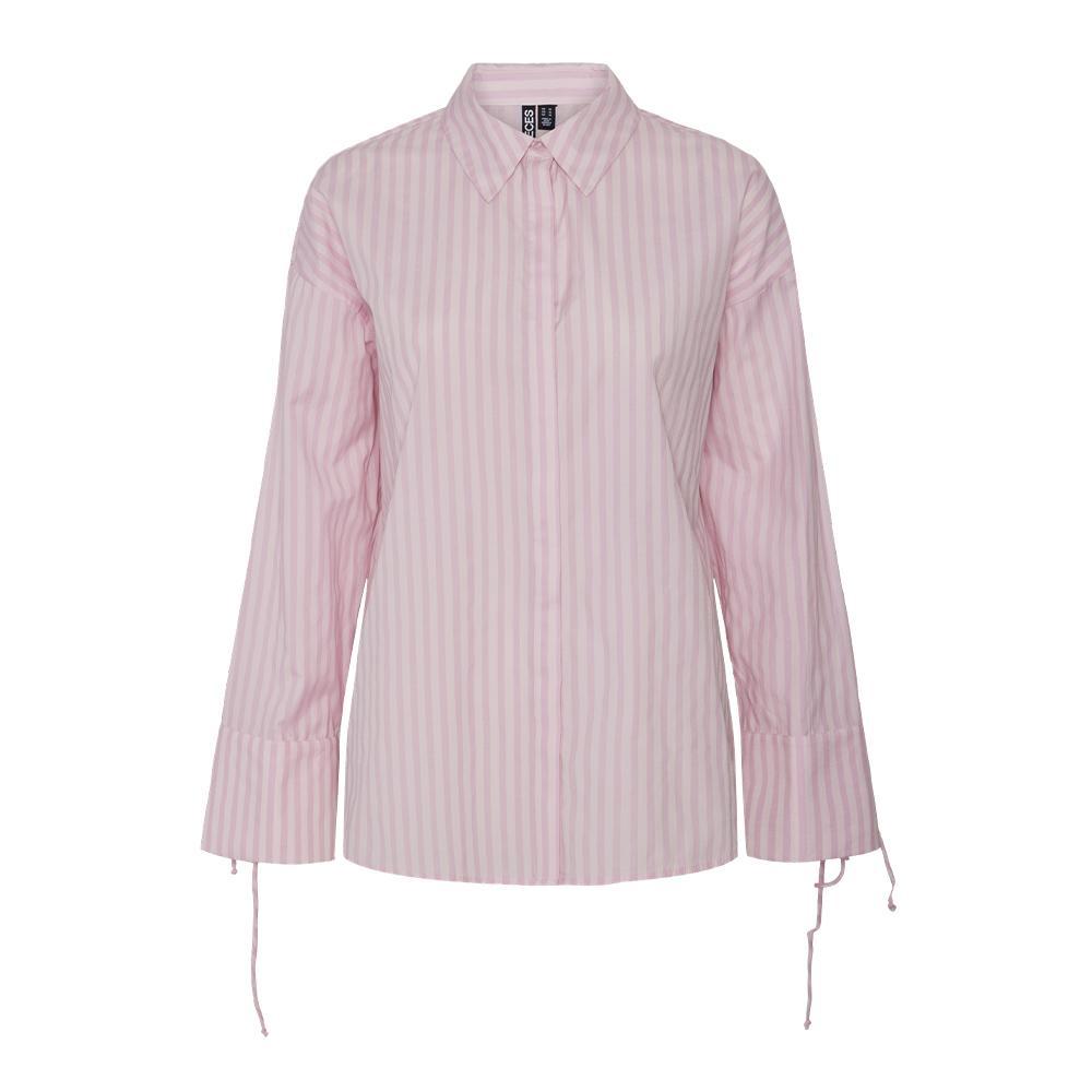 Craquez pour la chemise femme de la marque Pieces !Coloris : RoseRayuresFermeture à boutonsManches longuesLiens sur les manchesComposition : 52% polyester recyclé , 48% coton