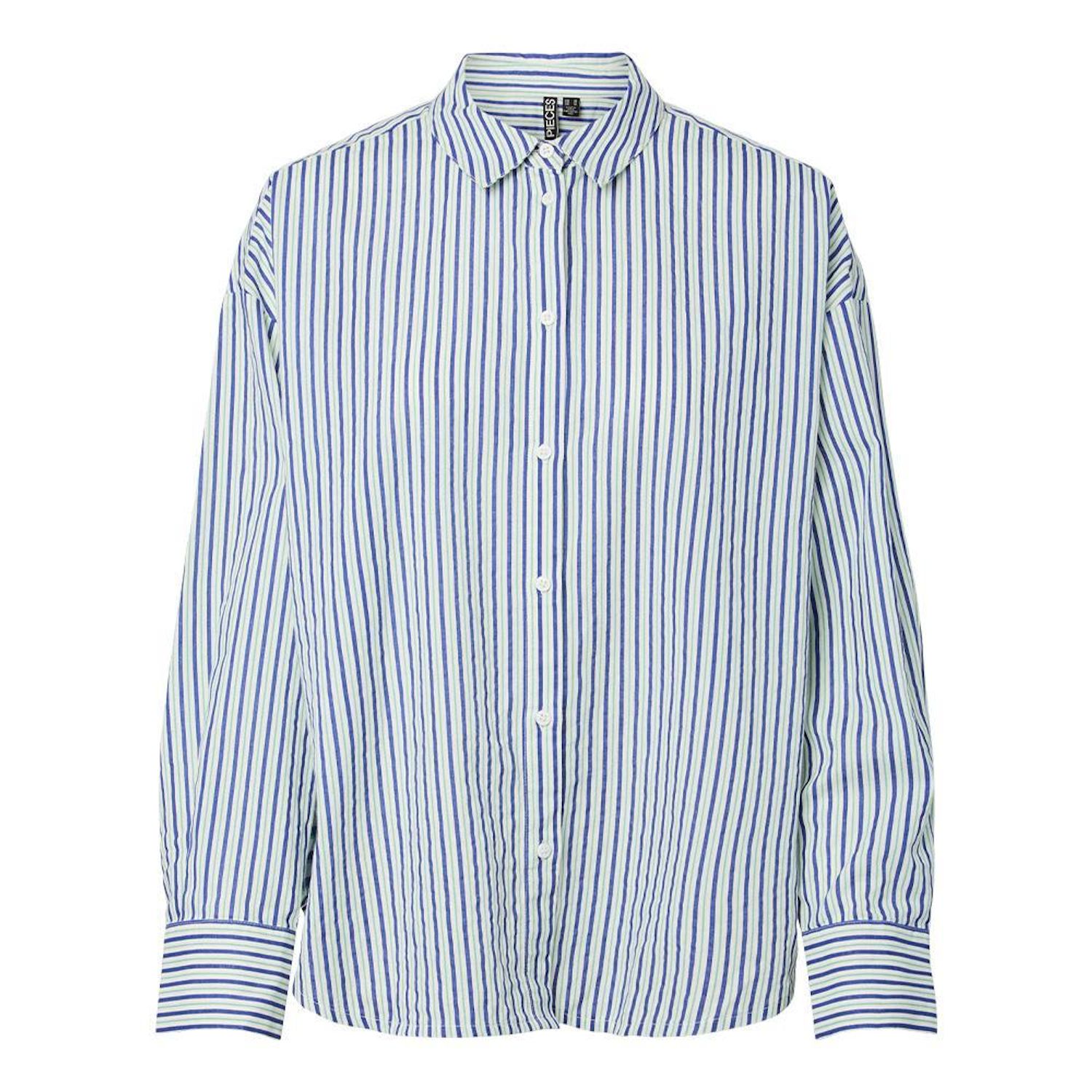 Optez pour cette chemise Pieces à prix bas !- Coloris : Blanche/Bleu- Col chemise- Manches longues- Composition : 100% coton