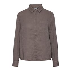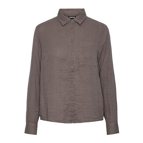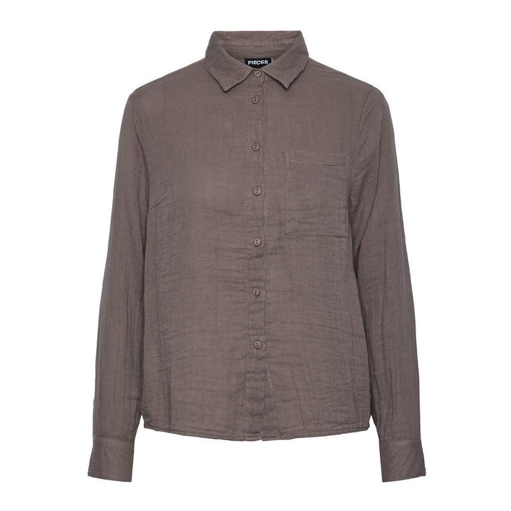 Craquez pour la chemise femme Pieces !Manches longuesCol chemiseFermeture à boutonsOuverture dans le dosColoris : MarronComposition: 100% coton