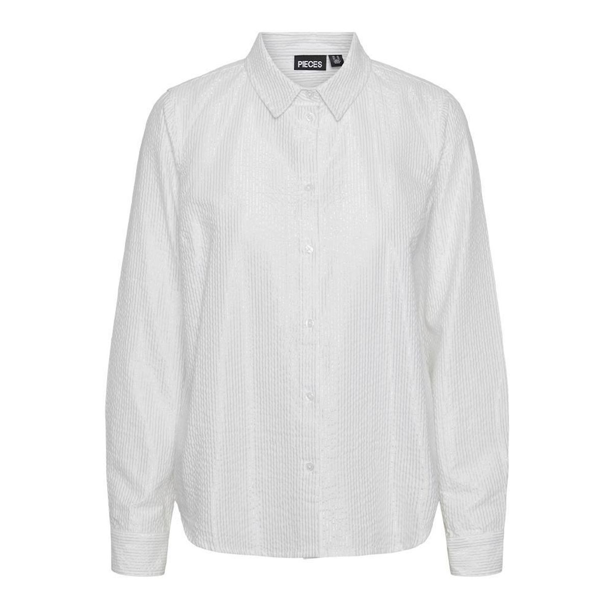 Optez pour cette chemise Pieces Coloris : Blanc/ArgentCol chemiseManches longuesComposition : 85% coton, 15% fibre métallique