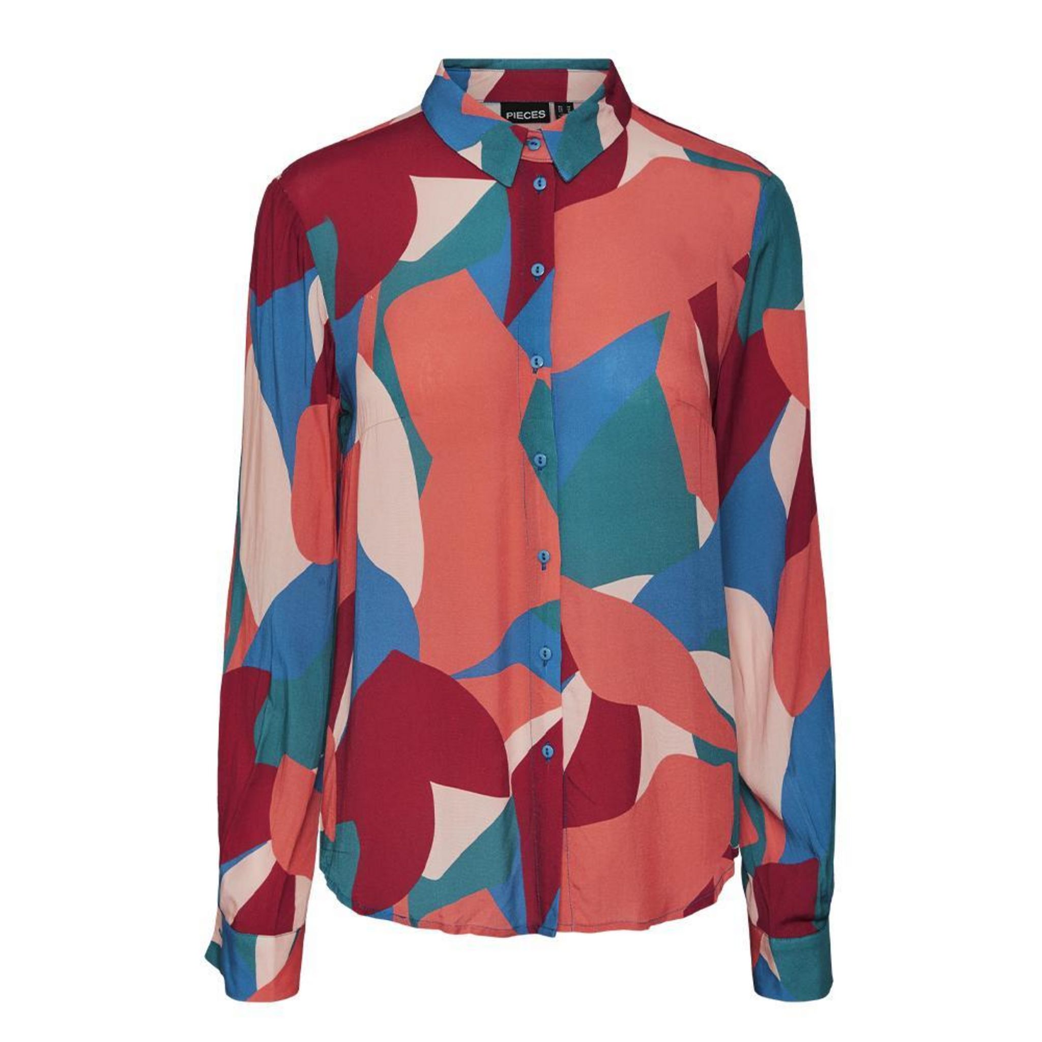 Optez pour cette chemise Pieces Coloris : Bleu/OrangeCol chemiseManches longuesMotifs imprimésComposition : 100% ViscoseFermeture par boutonPoignets boutonnés