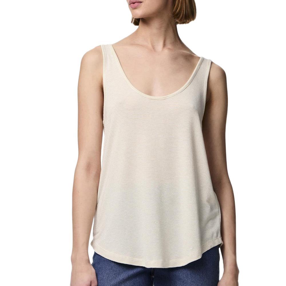 Optez pour ce débardeur Pieces Coloris : Beige/DoréSans manchesComposition : 85% viscose, 10% fibres métalliques, 5% élasthanneMotifs à rayures